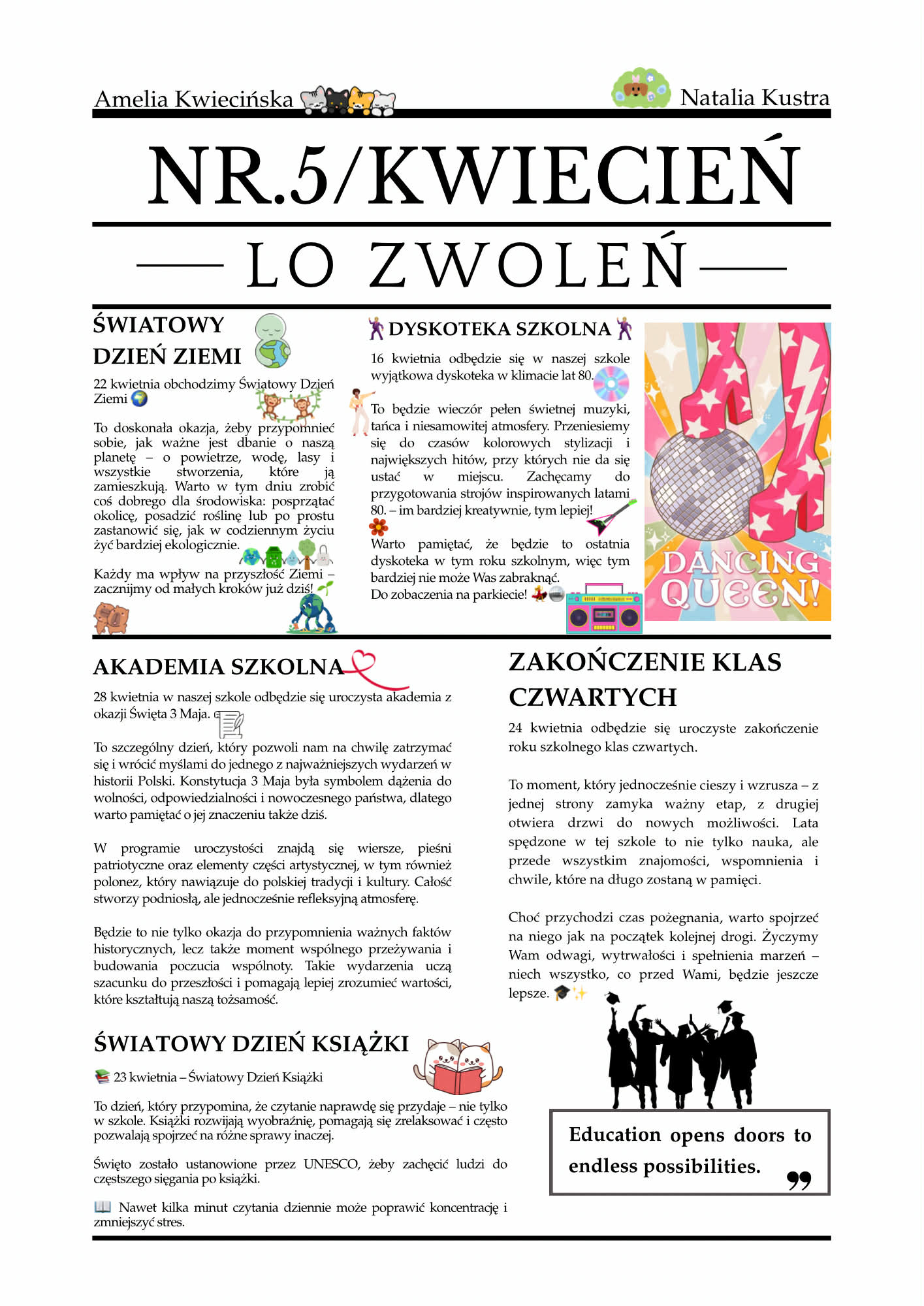 Gazetka Szkolna - kwiecień 08-04-2026Data publikacji, 08-04-2026, Administrator Autor, Administrator , 253Ilość wyświetleń, 253